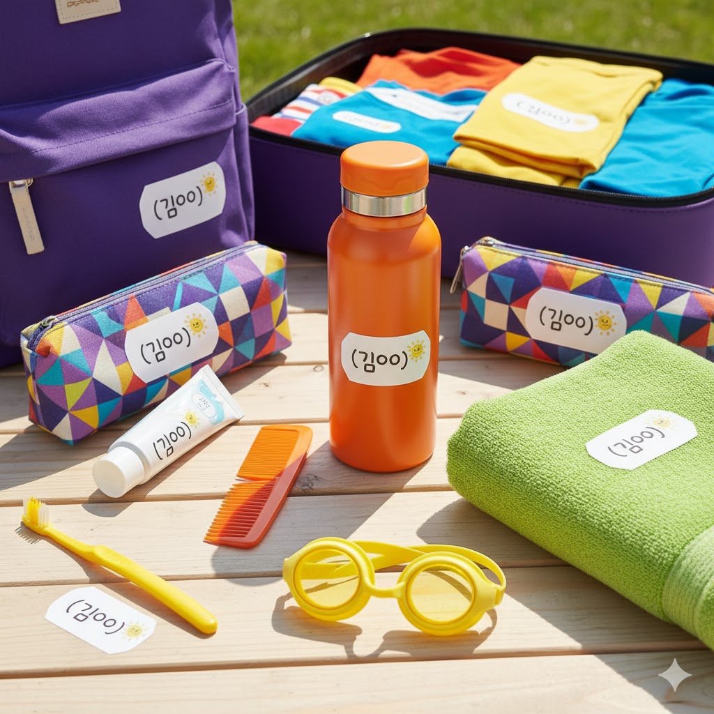 - 아이 이름 라벨 부착 (옷, 수건, 물품 전부)