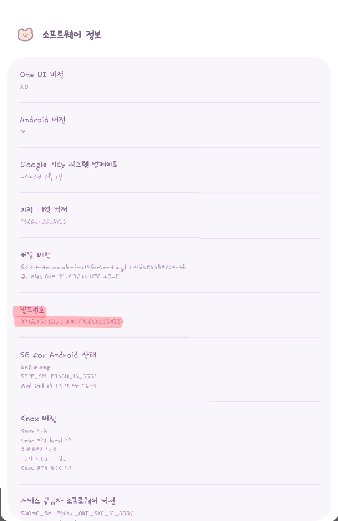 - ‘빌드 번호(Build number)’ 부분을 6~7회 연속 터치합니다.