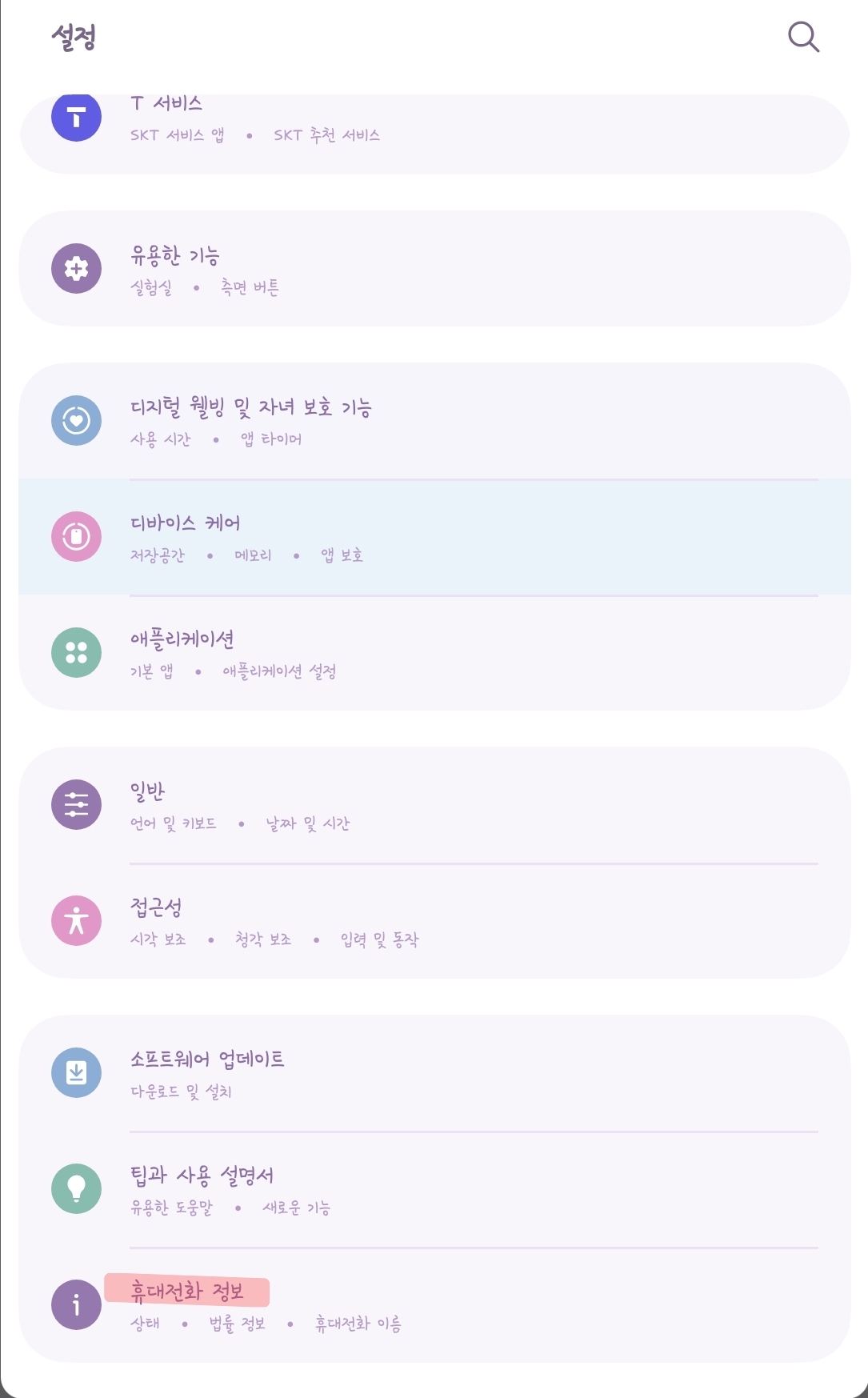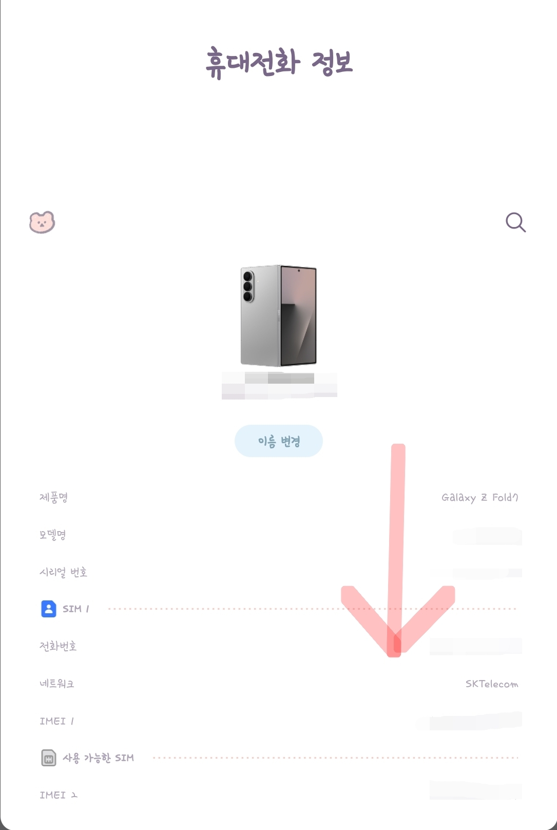 - 아래로 스크롤 → ‘휴대전화 정보’ 선택